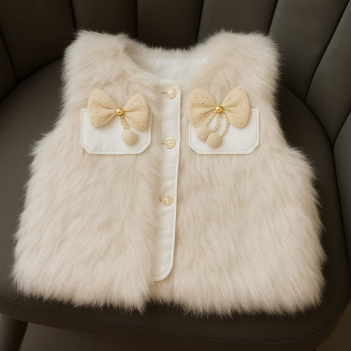 Adorable Faux Fur Bow-Embellished Vest for Babies